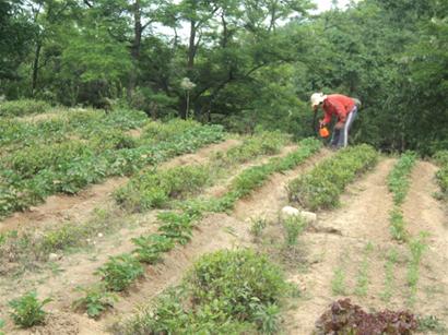 山坡上用木棍圈地 种蔬菜享受“田园”