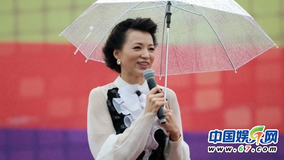 杨钰莹冒雨献唱董卿助阵 男粉丝登台膜拜(组图)