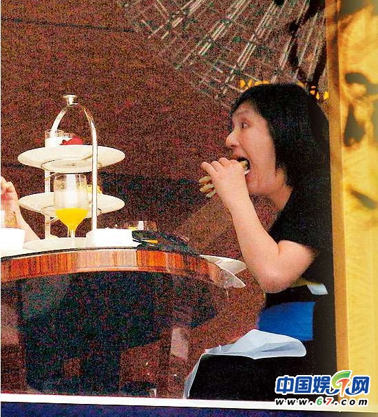 5月17日,杨千嬅趁老公不在港,相约女友人到四季酒店喝下午茶。当见到三文治时,杨千嬅忘形狼吞虎咽,容貌搞笑。