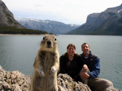 国家地理每日一图发布了一对夫妇在加拿大班夫国家公园(Banff National Park)中最大的湖泊明尼湾卡湖(Minnewanka)游玩时拍下的照片当时,他们调好了定时拍摄,好奇心特强的小松鼠凑到吱吱对焦的相机前,抢下了如此镜头。