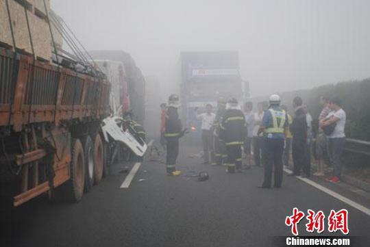 6月3日晨5时至6时半时段,江苏盐城经济开发区境内的沈海高速(G15)与盐淮高速(S18)互通附近,因大雾部分路段能见度不足10米,致使沈海高速和盐淮高速方向连续发生多起汽车追尾事故,造成11人死亡30多人受