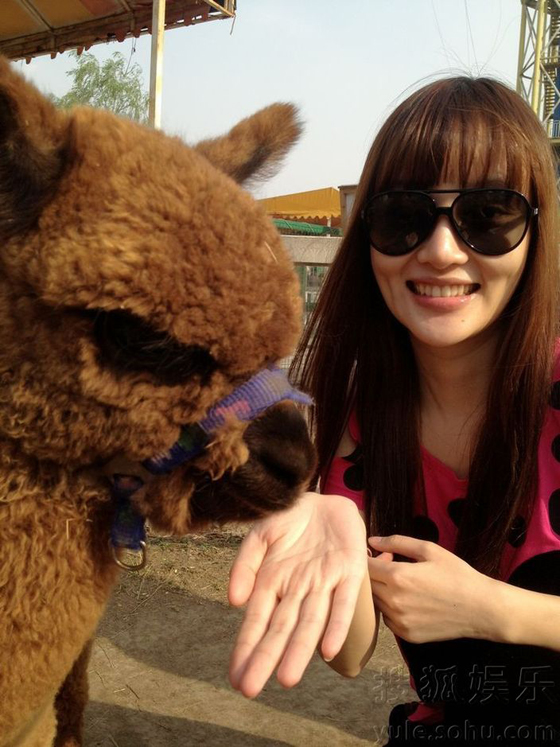 李小璐霍思燕闺蜜团逛公园 开心与羊驼合影(组图)