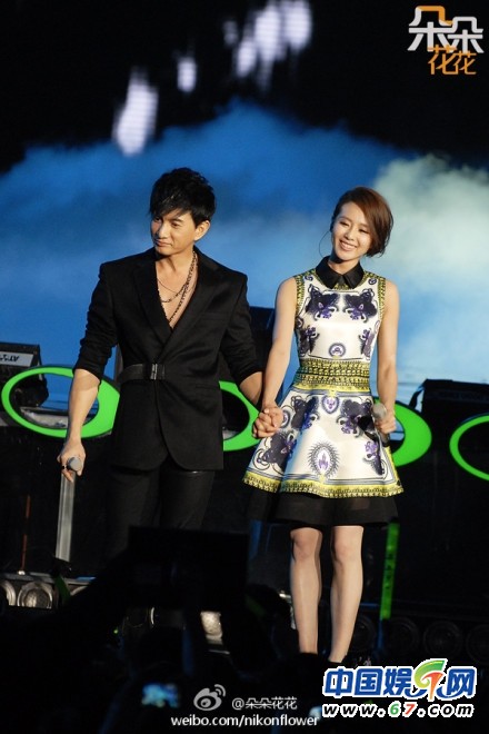新年的芒果台跨年晚会,两人甜蜜合唱,每一个动作和每一个眼神都透露着热恋情侣的感觉。