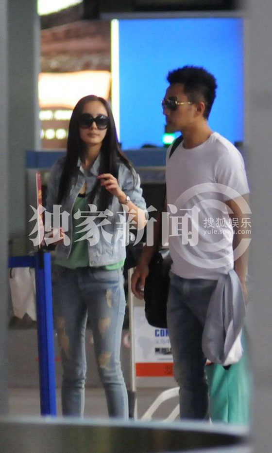 杨幂刘恺威情侣装现身机场 杨幂摘墨镜安检素颜憔悴(图)