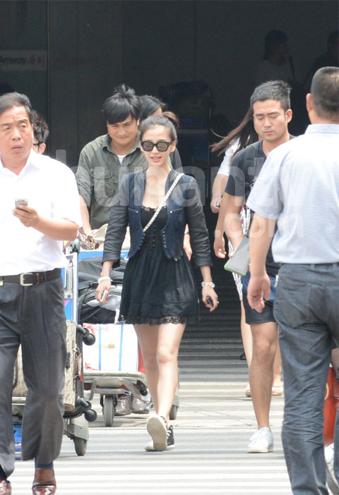 Angelababy清凉长裙现身 妆容不协调被批老气(组图)