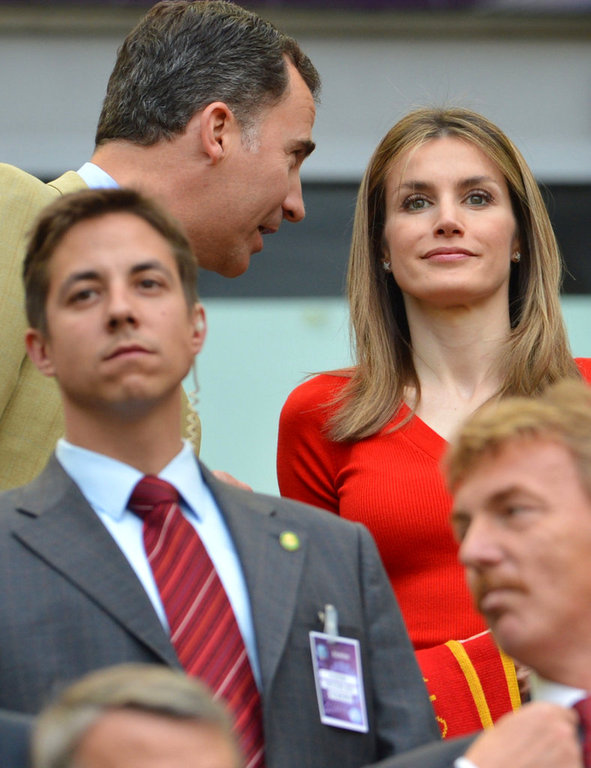 西班牙王妃助阵欧洲杯 红衣抢镜显贵族范(组图)