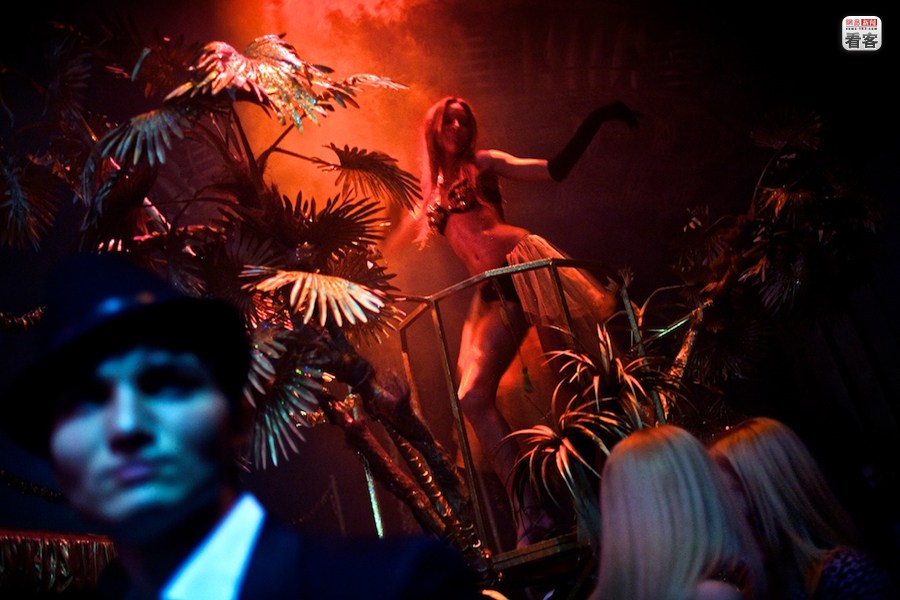 莫斯科最昂贵的夜总会之一The Diagliev Club,一名舞女正在台上表演。