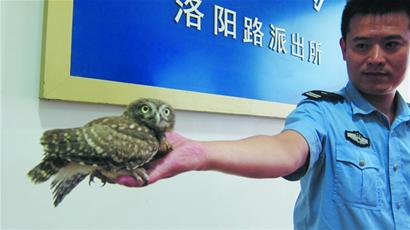 “这只小鹰是我刚才从流浪狗的嘴里夺下来的。”男青年向民警讲述,他今年19岁,从河南来岛城打工,这只小鹰是他在河边偶然发现的,当时一只流浪狗已经咬住了小鹰的翅膀,他丢石块砸跑了流浪狗,把小鹰救了下来。他以为这是只普通的鹰,没想到是只猫头鹰。他解释称,他只是在训练猫头鹰的服从性,想要学电视上那样“熬鹰”,让这只刚刚出生不久的小鹰彻底驯服,以后当成宠物养着,没事还能放出去抓个兔子什么的。“那样感觉特别酷。”男青年称。 民警联系鸟类专家治伤 “猫头鹰是国家二级保护动物,非法猎杀或买卖猫头鹰,都要受到法律的严惩。”洛阳路派出所的民警称,他们对男青年批评教育后,让他写下保证书后离开。昨天市动物园的野生鸟类保护专家赶到派出所,经过检查,小猫头鹰的右翅膀关节有轻微错位。“可能是与其他动物打斗挫伤了,问题不大。”专家对小猫头鹰翅膀进行固定后,将它带回了动物园,等它痊愈后,将会把它带到野外放生。 (通讯员 朱海生 王明伟 记者黄飞 摄影报道)