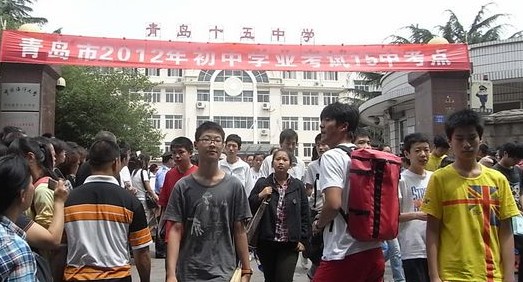 上午考完数学,青岛市15中的考生们走出考场