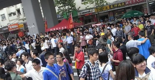青岛市15中门口,家长和孩子组成一片“人海”
