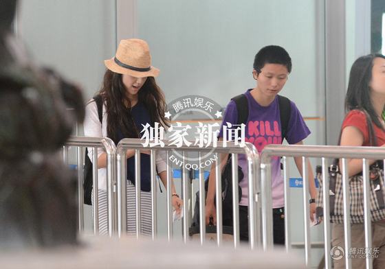 汤唯素颜低调现身机场 手握汤勺卖萌舔不停(组图)