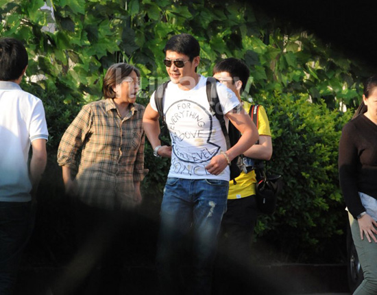 陆毅清凉装回京露纹身 讨“大妈”欢心喜笑颜开(图)