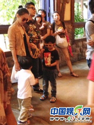 张柏芝携子游迪斯尼 网友求合影Lucas帅Quintus呆