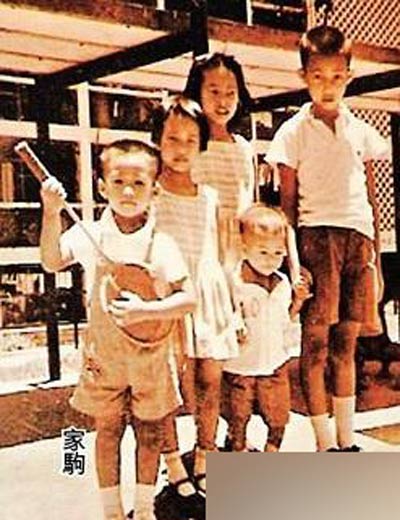 家驹说自己离不开音乐,他到底有多爱音乐呢?不妨看看他小时候的相片,黄家五兄弟姐妹,那位反拿着羽毛球拍当吉他的便是家驹了。