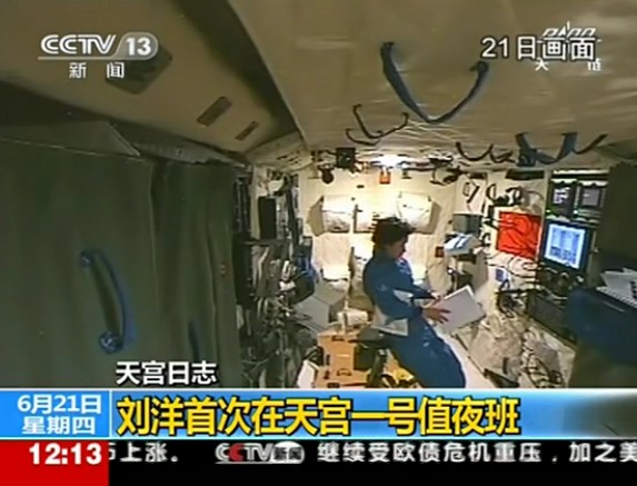 【镜头】20日22时,刘洋做好准备,开始了“天宫”生活的第一次夜班。