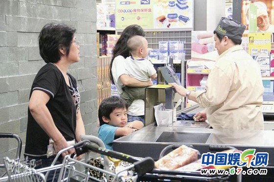 张柏芝带两儿子购童装 Lucas试衣黑脸酷似霆锋(组图)