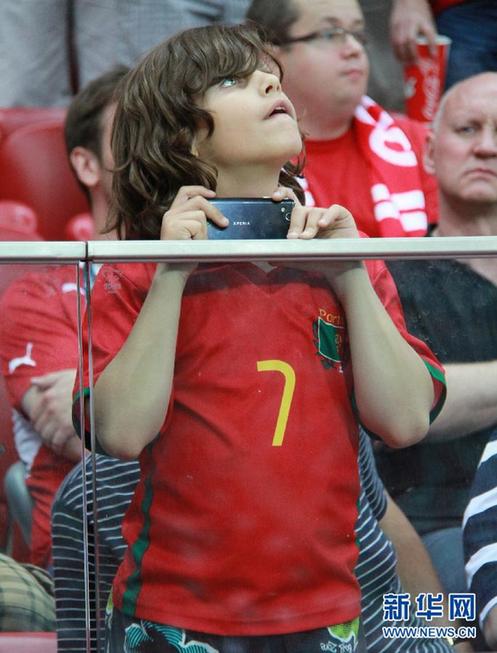 6月21日,一名葡萄牙队小球迷在观看比赛。当日,在波兰华沙进行的2012欧洲足球锦标赛首场四分之一决赛中,捷克队对阵葡萄牙队。