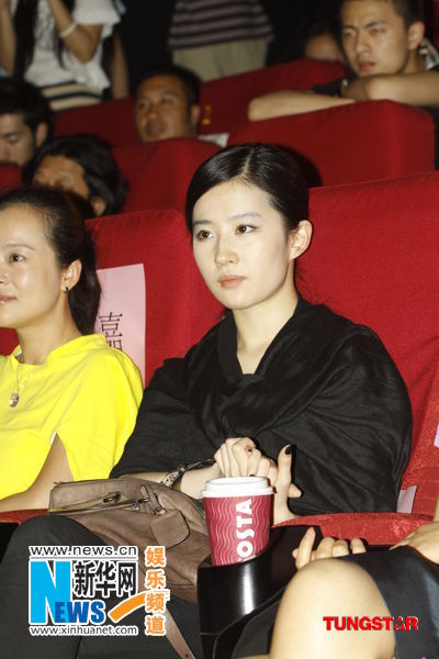 刘亦菲淡妆低调捧场老同学 卖萌表情连环拍(组图)