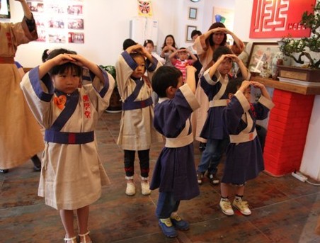 统拜师典礼,活动使孩子和市民们感受到我国博大精深的传统文化。