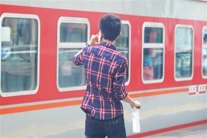 车启动,一名同学通过电话与车内的同学惜别