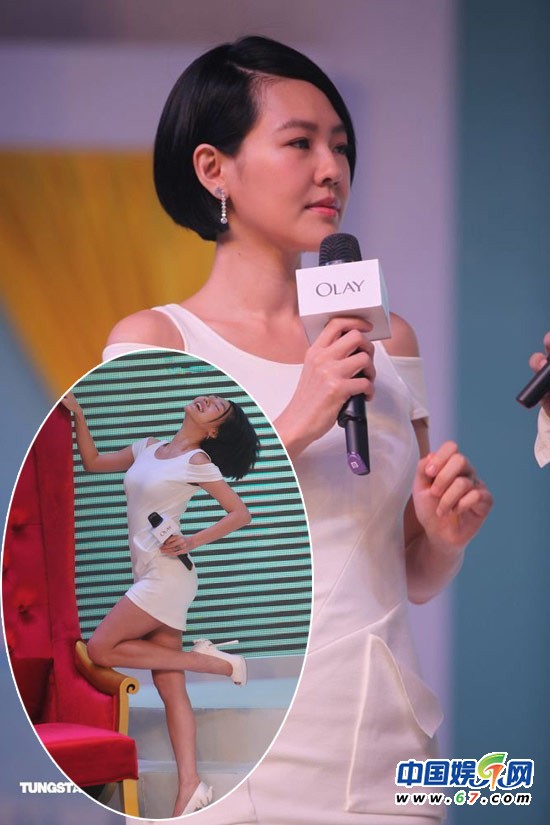 近日,小S频繁现身京城捞金,为某美容品代言站台。昨天,一身白色露肩装现身的小S,配合蔡康永这一老搭档一出场就笑果不断,依旧不忘耍宝的小S一出场就摆出女王架势,逗得全场前仰后合。现场,其嚣张把自己的披风脱掉,大秀苗条身材,十分风骚。再度生孩子的她,胸部十分丰满,尽管包得很紧,仍看得出来有下垂的痕迹。