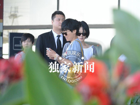 王菲回京大队人马护驾 穿T恤仔裤为粉丝签名(组图)