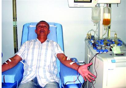 同一天,57岁的仇兆强也来到青岛血站捐献了2个治疗量血小板。