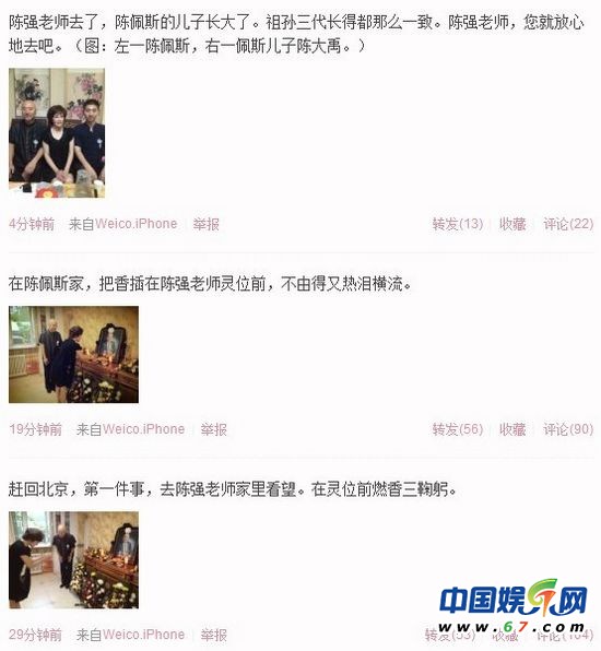 刘晓庆为陈强上香泪流满面 叹祖孙三代相貌相似(组图)