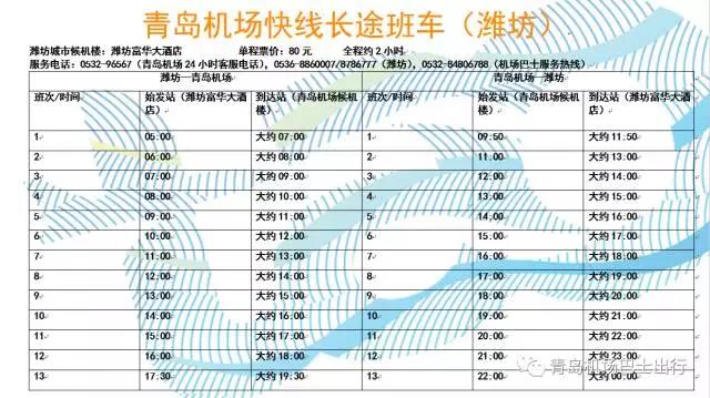 潍坊到青岛机场大巴 早5:00-晚17:30