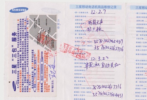 王先生则对售后的说法提出了异议,每次故障都是“通话时无故静音”,只是第二次故障时多了死机和自动关机的问题,他认为这是三星方面在回避问题。并且他之前两次维修手机,三星都没有在维修记录中登记主板串号,后来在他强烈要求下,工作人员才补填了。