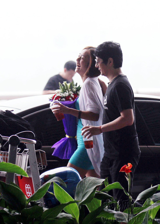郑钧捧玫瑰接机玩浪漫 妻子刘芸惊喜送拥抱(组图)