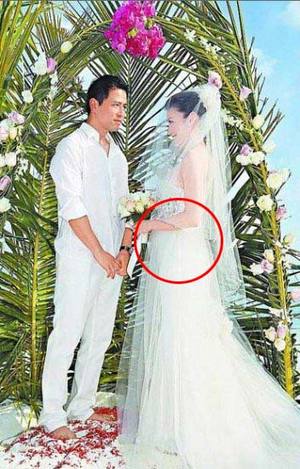 林熙蕾跟服饰商人杨晨在马尔地夫举行浪漫婚礼,林熙蕾挚友舒淇远飞千里参加婚礼,并与林熙蕾抱在一起玩亲亲,大秀姐妹好交情,并有感而发称“都是因为爱而存在”。而向来以性感美艳著称的林熙蕾,这回在婚礼上穿的婚纱,胸部以下的裙摆却非常宽松,腰身不明显,飘出浓浓孕味。