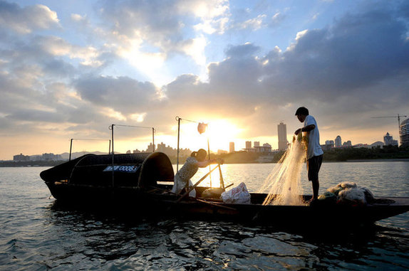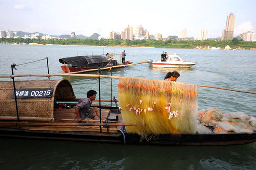 2012年7月10日,广西柳州,渔民在柳江上捕获到的全是普通淡水鱼。
