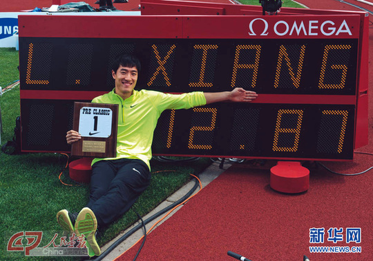 田联尤金站刘翔3连冠 超风速平世界纪录(图)