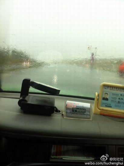 12日下午16:19左右发微博:“雨好大,鞋湿了,身上透了…”(感谢网友