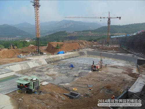 2012年7月11日,海洋馆以北筏板底层双向钢筋网绑扎完成100平方,完成约45%。截止目前,植物馆已完成基坑开挖、边坡支护工程,垫层施工完成总工程量的75%,抗浮锚杆完成70%,底板防水65%,筏板混凝土20%。