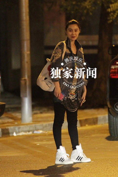 范冰冰素颜聚餐秀戒指 深夜同神秘男步行回家(组图)