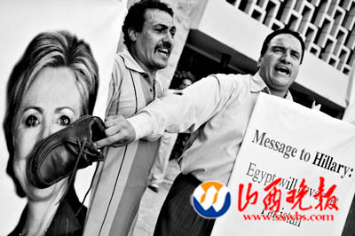 希拉里访埃及遭“扔鞋”抗议 免债动机被疑