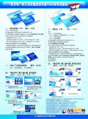 今天,记者从青岛市邮票公司了解到,为纪念“蛟龙号成功完成7000米级海上试验”这一历史时刻,中国邮政于2012年7月16日特
