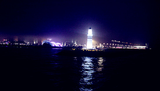 据了解,奥帆游轮“蓝海明珠”号夜游“三湾”是本届海洋旅游板块的亮点。该项目自“五一”试运行以来,客源火爆,深受欢迎。“夜游三湾——白天不懂夜的美”项目以世界闻名的奥帆中心海湾夜景为中心,以豪华游轮蓝海明珠号游览浮山湾、太平湾、汇泉湾为主要观赏点,带给游客一次激情的浪漫体验。“三湾”不仅是青岛海湾的精华部分,更是中国人民海军海上阅兵的主要航线,接受过国家最高领导人的检阅。历时50分钟的游览不仅可感受夜航青岛的美,更可享受“海上检阅”的礼遇。