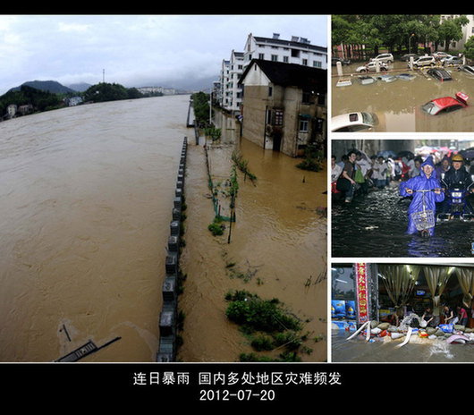 7月21日,北京立水桥地区积水严重,许多车辆浸泡在水中无法行驶。当日18时30分,北京市气象台发布自2005年建立天气预警制度以来的第一个暴雨橙色预警,预计持续降雨将超过20小时。受暴雨影响,北京市区多座立交桥下积水,交通被迫中断。