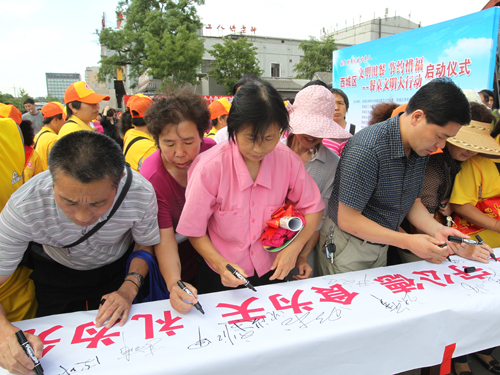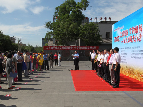 为进一步落实中央和北京市“关于开展道德领域突出问题专项教育和治理”会议精神,推动窗口行业特别是餐饮行业诚信建设,6月15日上午,西城区“文明用餐节约惜福——餐桌文明大行动”在湖广会馆门前正式启动。此次活动,由西城区文明办、商务委、卫生局、国资委、旅游委、西城工商分局、消协、私个协、饮食行业协会等九家单位联合发起,旨在提升餐饮行业诚信经营意识和文明服务水平,在全社会树立倡导厉行节约,反对浪费的良
