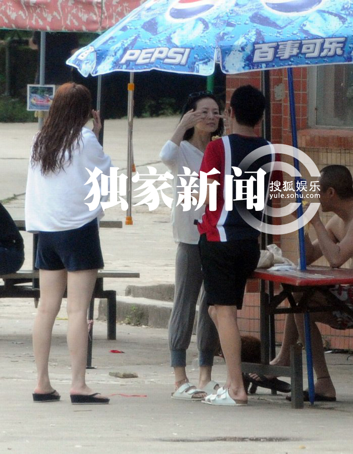章子怡素颜与型男打球表情怪异 拍戏生活惬意(组图)