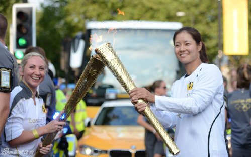 北京时间7月26日消息,尽管没有成为本届中国奥运代表团在开幕式的旗手,但中国网球名将李娜81万还是成为了火炬手,为伦敦的奥运圣火的传递贡献了自己的力量。就在今天,李娜作为第147号火炬手,以伦敦哈林盖区(Haringey)作为起点,在众多中国粉丝以及伦敦市民的见证下将奥运圣火传递到下一名火炬手的手上。