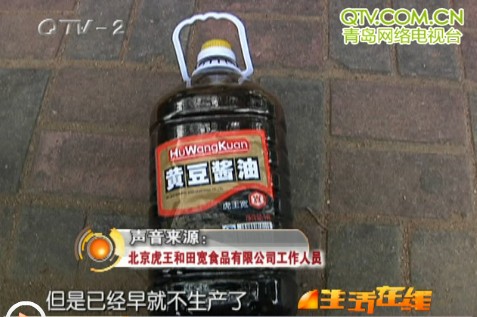 记者观察了一下,发现货架上销售的这批黄豆酱油,生产日期大都是5月。而知情人小朱曾告诉记者,他上班时就有一批5月份的北京酱油虎王宽黄豆酱油,是用过期酱油灌装的,几天前刚刚发到麦德龙。记者以酒店采购的名义,和推销员聊了起来,对方口若悬河的推荐了这种五升装的虎王宽黄豆酱油。听这位的口气,五升装的虎王宽黄豆酱油绝对是上乘之品。不过,这些生产日期标注为5月份的酱油,到底是永生调料公司自己灌装的,还是从北京公司批发来的呢?记者随即拨通了出品商北京虎王和田宽食品有限公司的电话。厂家代表说,因为销路不好,五升装的虎王宽黄豆酱油早在半年前就不生产了。厂家停产半年的酱油,如今却印着两个月前的生产日期,出现在卖场的货架上,其中的缘由可想而知。更让人气愤的是,与此同时,永生调料的仓库里,工人们还在明目张胆的灌装着虎王宽黄豆酱油。除了酱油,记者发现,工人们还在灌装一种虎王和田宽料酒?再跟厂家联系,对方的回答,更明白。