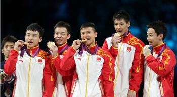 卫冕冠军中国队因为在资格赛中出现失误仅排名第六位,决赛中他们和资格赛排名第五的日本队同组出场。资格赛排名前两位的美国队和俄罗斯队同组,排名第三的东道主英国队和德国队一组,乌克兰队和法国队同组。和资格赛采取的“5-4-3”的赛制不同,决赛的计分方式采取“5-3-3”,即每单项各队的五名队员中只上3人,3人的得分全部计入总分,体操男子团体颁奖 国歌响彻中国5虎破魔咒媒体来源:这也为各队在决赛中技术动作的稳定性提出了更高要求。