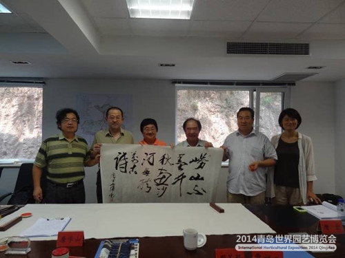 咨询会议结束时,唐学山教授接受了专家专访,并欣然提笔,为青岛世园会题辞留念“崂山不墨千秋画,山河无弦万古诗。”