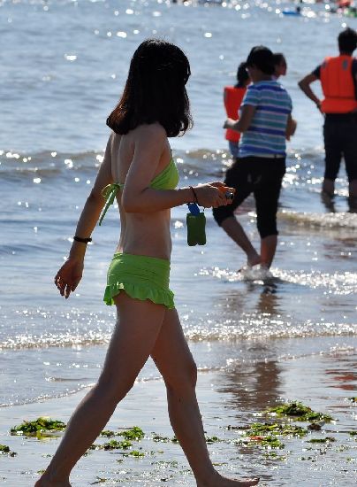 青岛海滨浴场现人海 比基尼美女清凉养眼(组图)