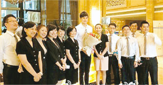 荣升业主的孙杨(中)回乡买豪宅,立刻受到热烈欢迎