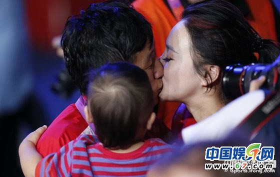 邹市明夺冠后与妻子冉莹颖拥吻庆祝